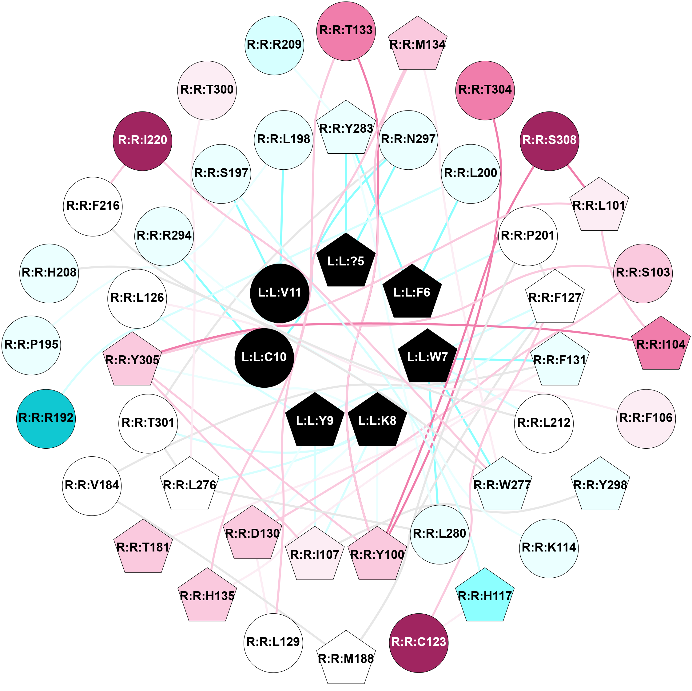 Show 44.00 Single 7RKM CX3CL1 7RKM-US28-CX3CL1-Gi1/β1/γ2 Show 43.48 Single 9KUG EP67 9KUG-C5a1 -EP67-Go/β1/γ2 Show 43.48 Single 9UYM Chemerin-9 9UYM-CML2-Chemerin-9-chim(Arrestin3-CtArrestin2) Show 43.48 Consensus class-a_on Orthosteric Ligand sensory_on alicarboxylic_on amine_on lipid_on nucleotide_on peptide_on protein_on Show 42.86 Single 8J6J GSK256073 8J6J-HCA2 -GSK256073-Gi1/β1/γ2 Show 42.31 Single 8XIQ L796778 8XIQ-SST3-L796778-chim(NtGi1-Gs-CtGi1)/β1/γ2 Show 42.31 Consensus gi_somatostatin Orthosteric Ligand 7WIC-SST2-Somatostatin-14-Gi1/β1/γ2 7XMS-SST4-Somatostatin-14-Gi1/β1/γ2 8X8L-SST5-Cortistatin-14-chim(NtGi1-Gs-CtGi1)/β1/γ2 7XMT-SST4-J-2156-Gi1/β1/γ2 7WIG-SST2-L-054264-Gi1/β1/γ2 8X8N-SST5-Octreotide-chim(NtGi1-Gs-CtGi1)/β1/γ2 7YAE-SST2-Octreotide-Gi1/β1/γ2 7YAC-SST2-Paltusotine-Gi1/β1/γ2 Show 41.67 Single 7XBX CX3CL1 7XBX-CX3CR1-CX3CL1-Gi1/β1/γ2 Show 41.67 Single 9M0R Neuropeptide-VF 9M0R-NPFF1-Neuropeptide-VF-Gi1/β1/γ2 Show 41.38 Single 8FEG (DNCP)-Beta-Naloxamine 8FEG-κ-(DNCP)-β-Naloxamine-Gi1/β1/γ2 Show 40.91 Single 6GT3 Imaradenant 6GT3-A2A -Imaradenant-Na Show 40.91 Single 8IHB GSK256073 8IHB-HCA2 -GSK256073-Gi1/β1/γ2 Show 40.74 Single 7T10 Somatostatin-14 7T10-SST2-Somatostatin-14-Gi3/β1/γ2 Show 40.74 Single 8ZBI Somatostatin-14 8ZBI-SST3-Somatostatin-14-Gi1/β1/γ2 Show 40.00 Single 7WIC Somatostatin-14 7WIC-SST2-Somatostatin-14-Gi1/β1/γ2 Show 40.00 Single 8IHK Acifran 8IHK-HCA3 -Acifran Show 40.00 Single 8IY9 Niacin 8IY9-HCA2 -Niacin-Go/β1/γ2 Show 40.00 Single 8JIM Monomethyl fumarate 8JIM-HCA2 -Monomethyl fumarate-Gi1/β1/γ2 Show 40.00 Single 9BUY LM189 9BUY-β2 -LM189-Gi1/β1/γ2 Show 40.00 Single 9L3Y Chemerin 9L3Y-CML2-Chemerin-Gi1/β1/γ2 Show 40.00 Single 9UYJ Chemerin-9 9UYJ-CML2-Chemerin-9-Arrestin2 Show 40.00 Consensus class-a_on_gp Orthosteric Ligand sensory_on_gp alicarboxylic_on_gp amine_on_gp lipid_on_gp nucleotide_on_gp peptide_on_gp protein_on_gp Show 40.00 Consensus hca_on Orthosteric Ligand hca2_on Show 39.29 Single 7Y64 C5a 7Y64-C5a1 -C5a-Gi1/β1/γ2 Show 39.29 Single 8XGO TAK448 8XGO-Kiss1-TAK448-chim(NtGi1-Gq)/β1/γ2 Show 39.29 Consensus chemokine_off Orthosteric Ligand ccr_off cxcr_off Show 39.29 Consensus cxcr_off Orthosteric Ligand cxcr3_off cxcr4_off Show 39.29 Consensus sst5_on_gp Orthosteric Ligand 8X8L-SST5-Cortistatin-14-chim(NtGi1-Gs-CtGi1)/β1/γ2 8X8N-SST5-Octreotide-chim(NtGi1-Gs-CtGi1)/β1/γ2 Show 39.13 Single 6C1R PMX53 6C1R-C5a1 -PMX53-Avacopan; Na Show 39.13 Single 7BZ2 Arformoterol 7BZ2-β2 -Arformoterol-Gs/β1/γ2 Show 39.13 Single 7SUS PubChem 122701908 7SUS-Apelin-PubChem 122701908 Show 39.13 Single 7W0L PubChem 122701908 7W0L-Apelin; Apelin-PubChem 122701908-Gi1/β1/γ2 Show 39.13 Single 8IA8 E7 peptide 8IA8-C3aB -E7 peptide-Gi1/β1/γ2 Show 39.13 Single 8IYW GSK256073 8IYW-HCA2 -GSK256073-Go/β1/γ2 Show 39.13 Single 8JZ7 MK6892 8JZ7-HCA2 -MK6892-Gi1/β1/γ2 Show 39.13 Consensus c3a_on Orthosteric Ligand 8HK2-C3aB -C3a-Gi1/β1/γ2 8IA8-C3aB -E7 peptide-Gi1/β1/γ2 Show 38.46 Single 7W0N Elabela 7W0N-Apelin; Apelin-Elabela-Gi1/β1/γ2 Show 38.46 Single 7XMS Somatostatin-14 7XMS-SST4-Somatostatin-14-Gi1/β1/γ2 Show 38.46 Single 8F7W Dynorphin 8F7W-κ-Dynorphin-Gi1/β1/γ2 Show 38.46 Consensus compl-peptide_on Orthosteric Ligand c5a1_on c3a_on Show 38.46 Consensus gq_class-a Orthosteric Ligand gq_peptide gq_amine gq_nucleotide Show 38.46 Consensus sst4_on Orthosteric Ligand 7XMS-SST4-Somatostatin-14-Gi1/β1/γ2 7XMT-SST4-J-2156-Gi1/β1/γ2 Show 38.46 Consensus sst4_on_gp Orthosteric Ligand 7XMS-SST4-Somatostatin-14-Gi1/β1/γ2 7XMT-SST4-J-2156-Gi1/β1/γ2 Show 38.10 Single 7YK7 DC591053 7YK7-RXFP4-DC591053-Gi2/β1/γ2 Show 38.10 Single 8IHJ Acifran 8IHJ-HCA3 -Acifran-Gi1/β1/γ2 Show 38.10 Single 8J6P Niacin 8J6P-HCA2 -Niacin-PubChem 25101223-Gi1/β1/γ2 Show 38.10 Single 8JII Niacin 8JII-HCA2 -Niacin-PubChem 25101223-Gi1/β1/γ2 Show 38.10 Single 8RW7 StilSwitch1 8RW7-A2A -StilSwitch1-Na Show 38.10 Single 8X17 Namodenoson 8X17-A3A -Namodenoson-Gi1/β1/γ2 Show 38.10 Single 9KUX CMPD644 9KUX-Apelin; Apelin-CMPD644-Arrestin2 Show 38.10 Consensus adenosine_on_gp Orthosteric Ligand a1_on_gp a2_on_gp a3_on_gp Show 38.10 Consensus alicarboxylic_on_gp Orthosteric Ligand succinate_on_gp hca_on_gp Show 38.10 Consensus gi_alicarboxylic Orthosteric Ligand gi_hca gi_succinate Show 38.10 Consensus gi_hca Orthosteric Ligand 8J6R-HCA2 -MK6892-Gi1/β1/γ2 8JIM-HCA2 -Monomethyl fumarate-Gi1/β1/γ2 8IHI-HCA2 -Acifran-Gi1/β1/γ2 8IHH-HCA2 -LUF6283-Gi1/β1/γ2 8I7V-HCA2 -Acipimox-Gi1/β1/γ2 8I7W-HCA2 -GSK256073-Gi1/β1/γ2 Show 38.10 Consensus hca2_on Orthosteric Ligand 8J6R-HCA2 -MK6892-Gi1/β1/γ2 8JIM-HCA2 -Monomethyl fumarate-Gi1/β1/γ2 8I7V-HCA2 -Acipimox-Gi1/β1/γ2 8I7W-HCA2 -GSK256073-Gi1/β1/γ2 8IHH-HCA2 -LUF6283-Gi1/β1/γ2 8IHI-HCA2 -Acifran-Gi1/β1/γ2 Show 38.10 Consensus hca2_on_gp Orthosteric Ligand 8J6R-HCA2 -MK6892-Gi1/β1/γ2 8IHI-HCA2 -Acifran-Gi1/β1/γ2 8IHH-HCA2 -LUF6283-Gi1/β1/γ2 8I7V-HCA2 -Acipimox-Gi1/β1/γ2 8JIM-HCA2 -Monomethyl fumarate-Gi1/β1/γ2 8I7W-HCA2 -GSK256073-Gi1/β1/γ2 Show 38.10 Consensus hca_on_gp Orthosteric Ligand hca2_on_gp Show 37.93 Single 7YKD Chemerin-9 7YKD-CML1-Chemerin-9-Gi1/β1/γ2 Show 37.93 Consensus ccr_off Orthosteric Ligand ccr2_off ccr5_off Show 37.93 Consensus gi_compl-pept Orthosteric Ligand 8HK5-C5a1 -C5a-Gi1/β1/γ2 8IA8-C3aB -E7 peptide-Gi1/β1/γ2 7Y66-C5a1 -BM213-Gi1/β1/γ2 7Y67-C5a1 -C089 peptide-Gi1/β1/γ2 8HK2-C3aB -C3a-Gi1/β1/γ2 7Y64-C5a1 -C5a-Gi1/β1/γ2 Show 37.50 Single 5TUD Ergotamine 5TUD-5-HT2B -Ergotamine Show 37.50 Single 7JVR Bromoergocryptine 7JVR-D2 -Bromoergocryptine-Gi1/β1/γ2 Show 37.50 Single 7X1U TRH 7X1U-TRH-TRH-chim(NtGi2L-Gs-CtGq)/β1/γ2 Show 37.50 Single 7XJI Solabegron 7XJI-β3 -Solabegron-Gs/β1/γ2 Show 37.50 Single 7XK2 MK6892 7XK2-HCA2 -MK6892-Gi1/β1/γ2 Show 37.50 Single 7Y27 Somatostatin-14 7Y27-SST2-Somatostatin-14-chim(NtGi2L-Gs-CtGq)/β1/γ2 Show 37.50 Single 7Y65 C5a (C-terminal peptide) 7Y