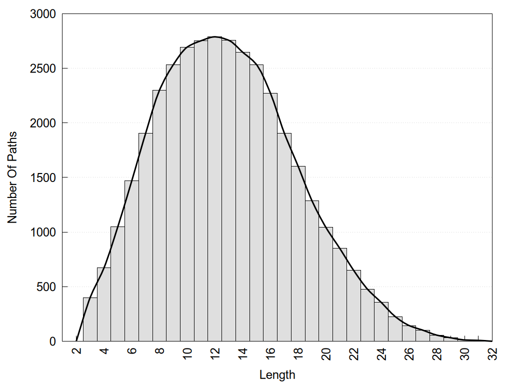 histograms of path distribution according to several parameters