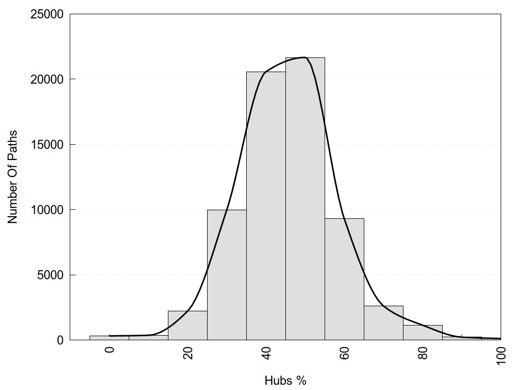 Hub1?, Hub2?: "Yes" if the corresponding node has more than 3 links, otherwise "No".