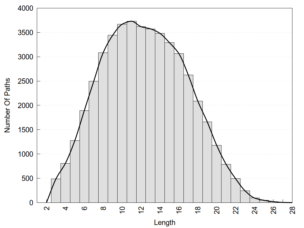 histograms of path distribution according to several parameters