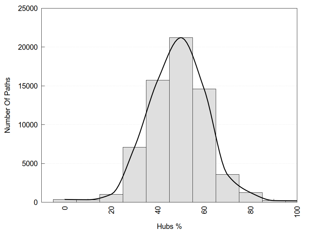 Hub1?, Hub2?: "Yes" if the corresponding node has more than 3 links, otherwise "No".