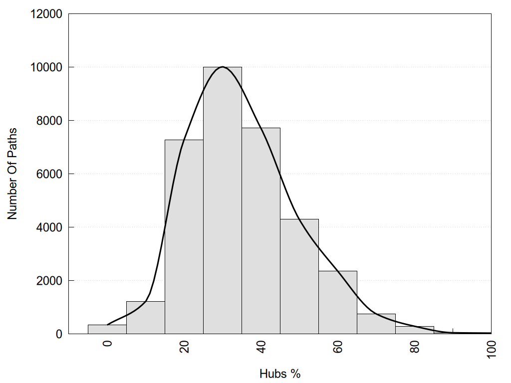 Hub1?, Hub2?: "Yes" if the corresponding node has more than 3 links, otherwise "No".