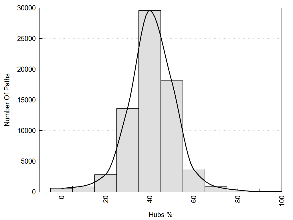 Hub1?, Hub2?: "Yes" if the corresponding node has more than 3 links, otherwise "No".