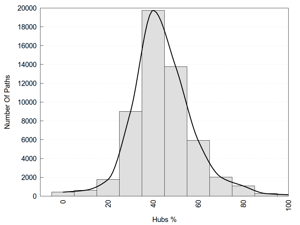 Hub1?, Hub2?: "Yes" if the corresponding node has more than 3 links, otherwise "No".