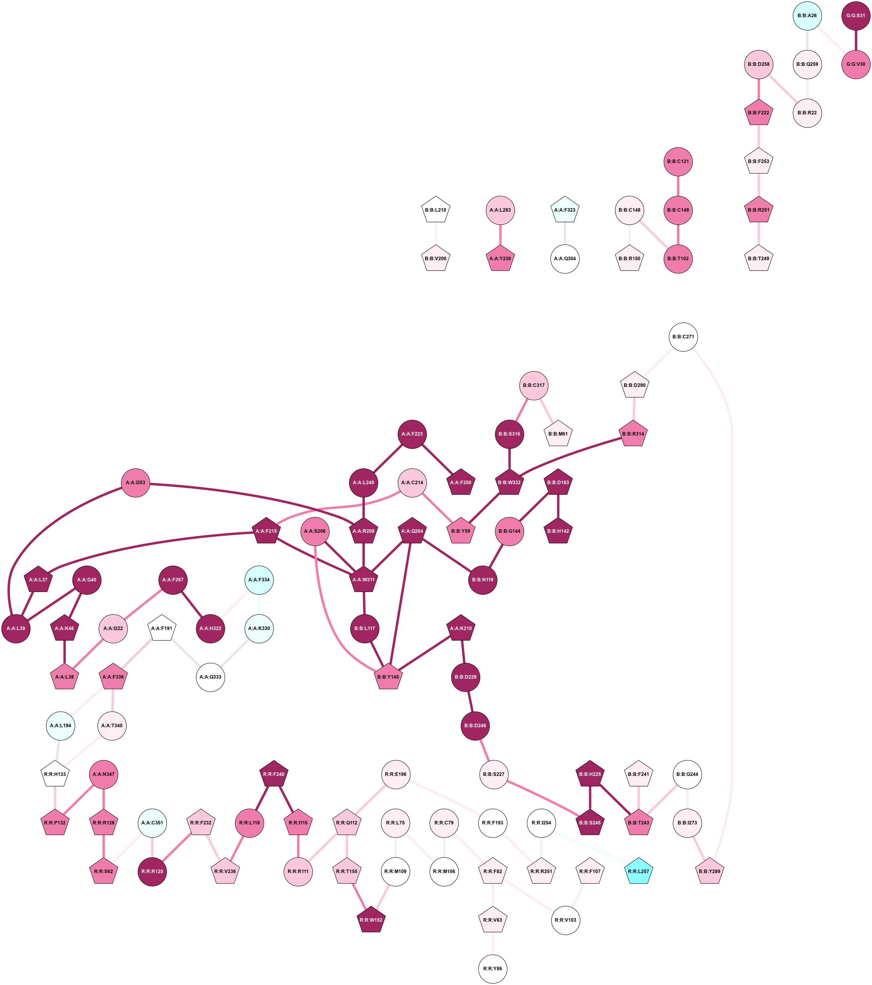 | 30 | A:A:L37 | A:A:V218 | 2.98 | Yes | No | 4 | 9 | 9 |