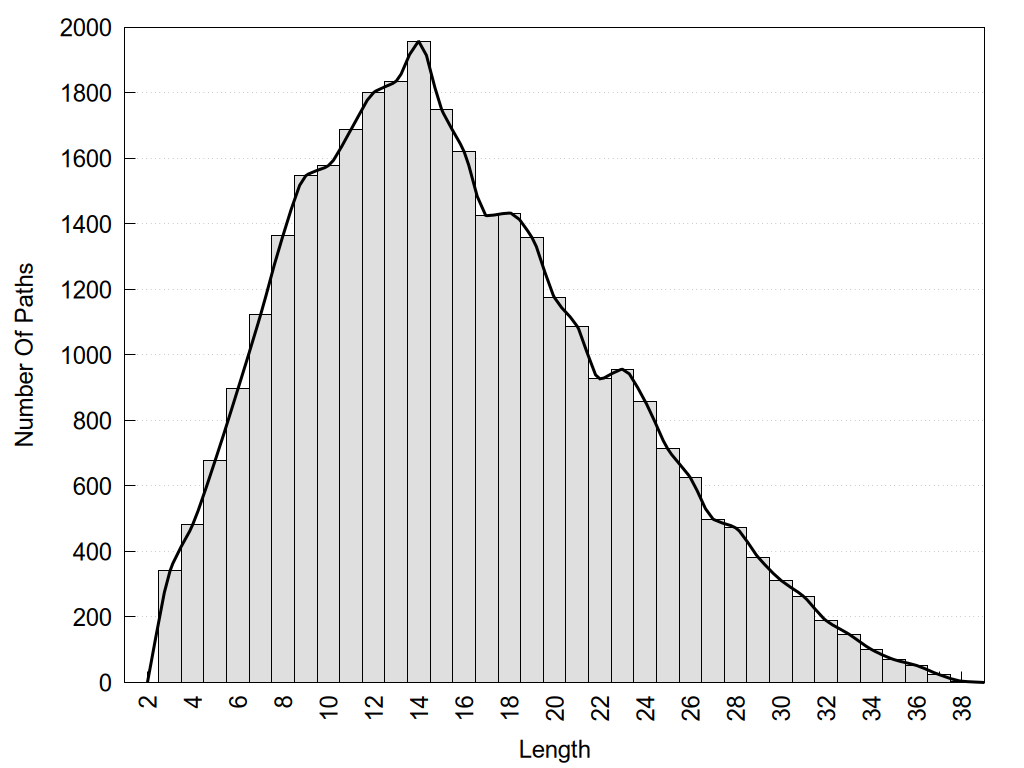 histograms of path distribution according to several parameters