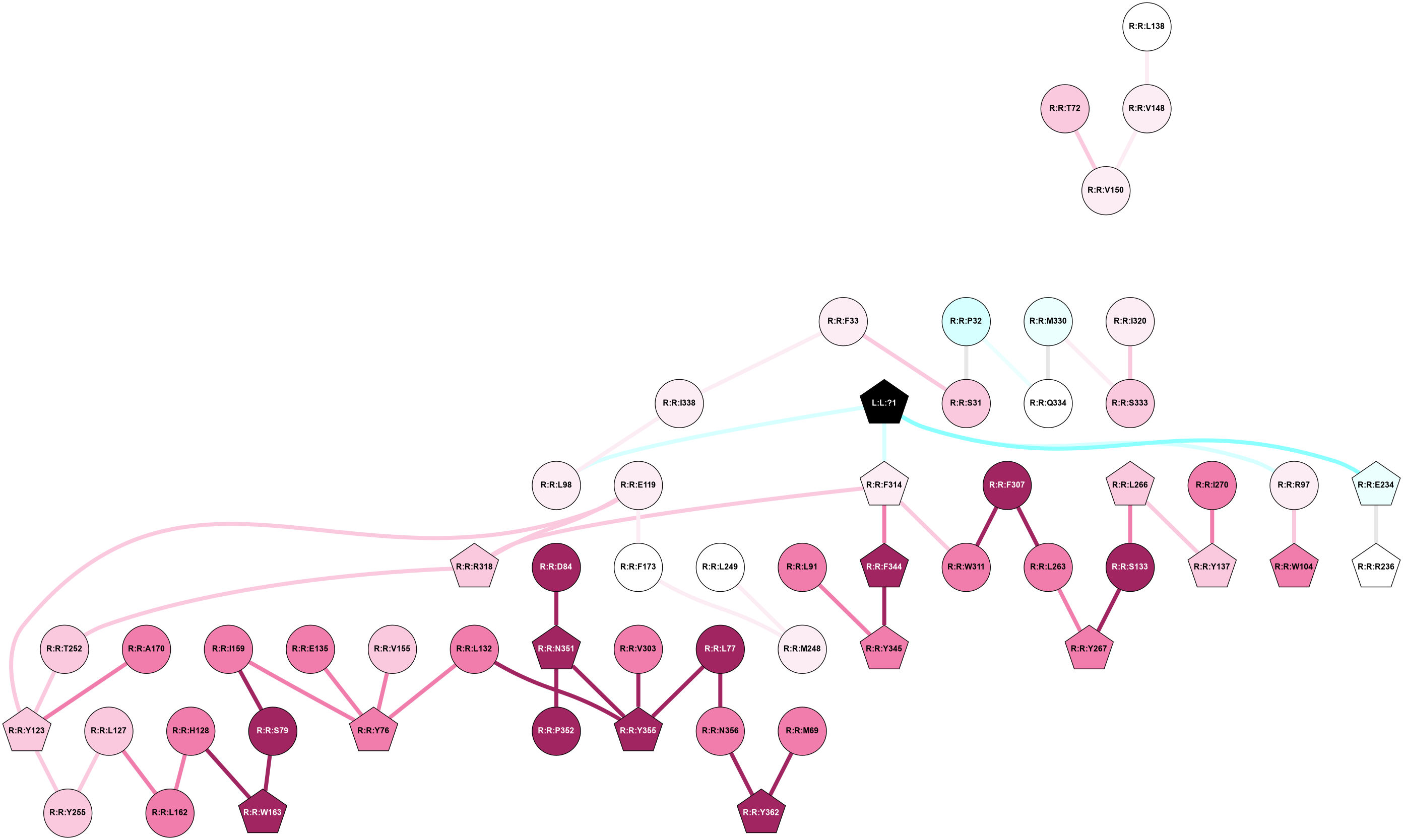 | 22 | R:R:N351 | R:R:Y355 | 30.7182 | 8.14 | Yes | Yes | 3 | 9 | 9 |
