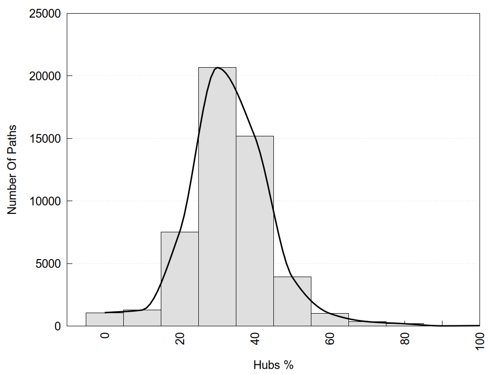Hub1?, Hub2?: "Yes" if the corresponding node has more than 3 links, otherwise "No".