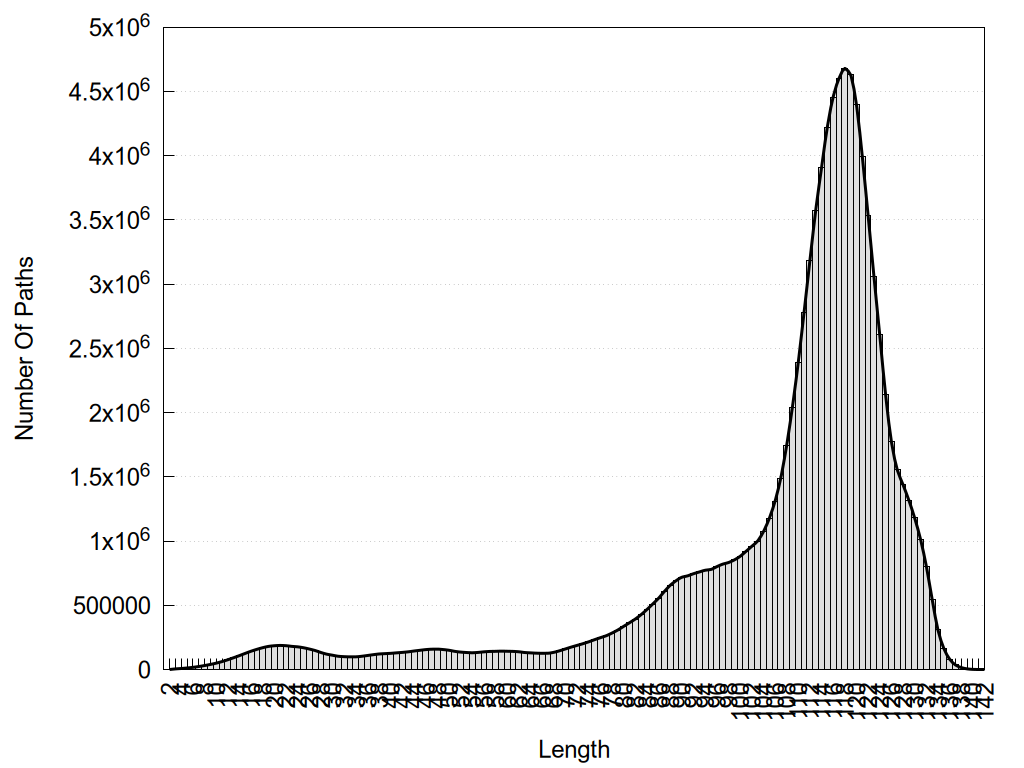 histograms of path distribution according to several parameters