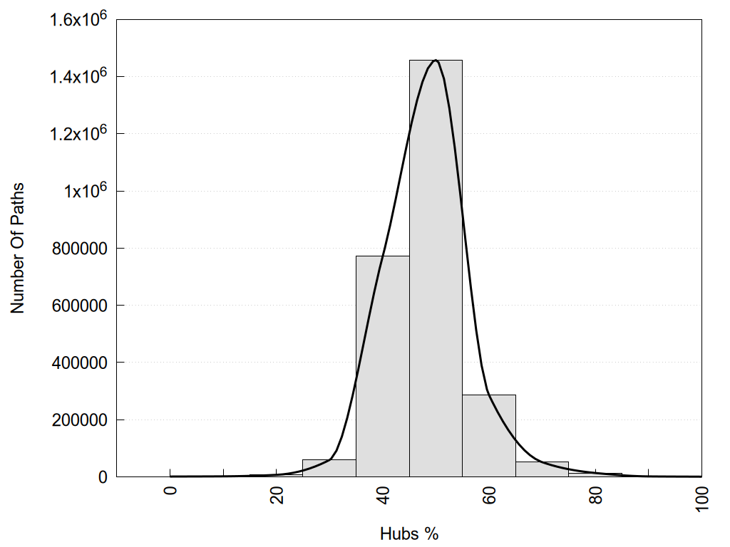 Hub1?, Hub2?: "Yes" if the corresponding node has more than 3 links, otherwise "No".