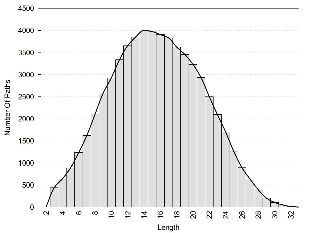 histograms of path distribution according to several parameters