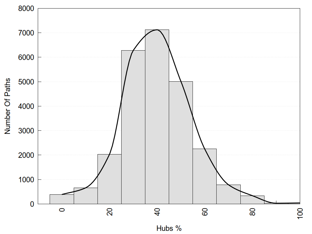 Hub1?, Hub2?: "Yes" if the corresponding node has more than 3 links, otherwise "No".