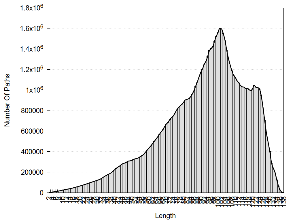 histograms of path distribution according to several parameters