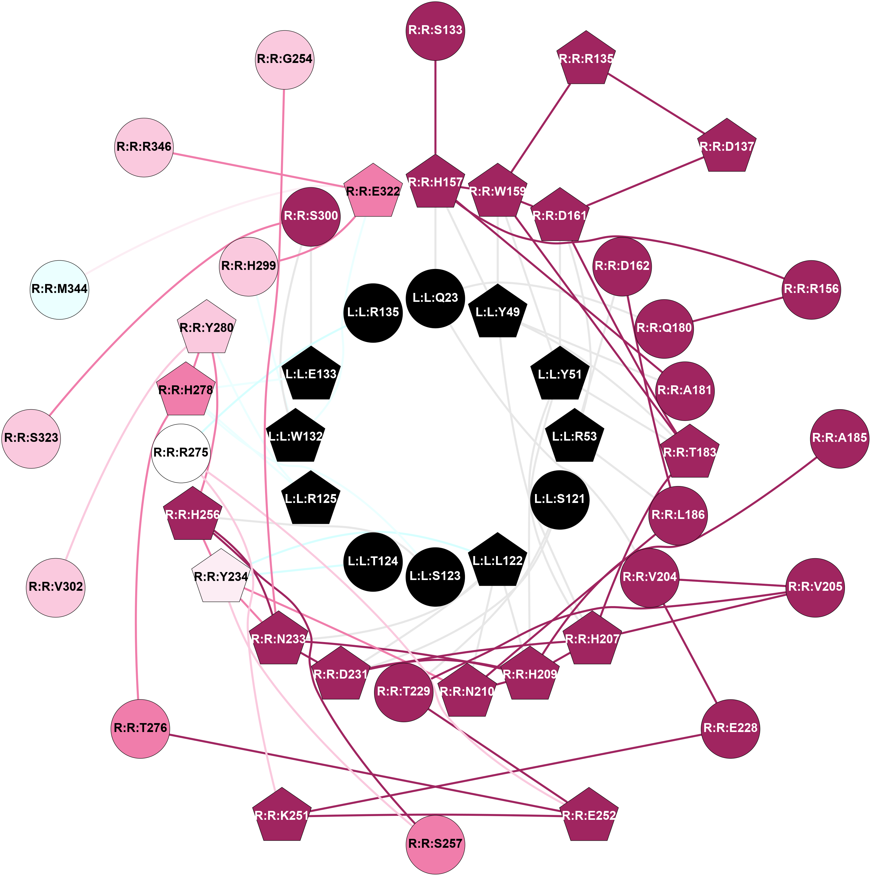 Links and nodes colored according to ConSurf Conservation Grade (See documentation): n/a 1 2 3 4 5 6 7 8 9 |