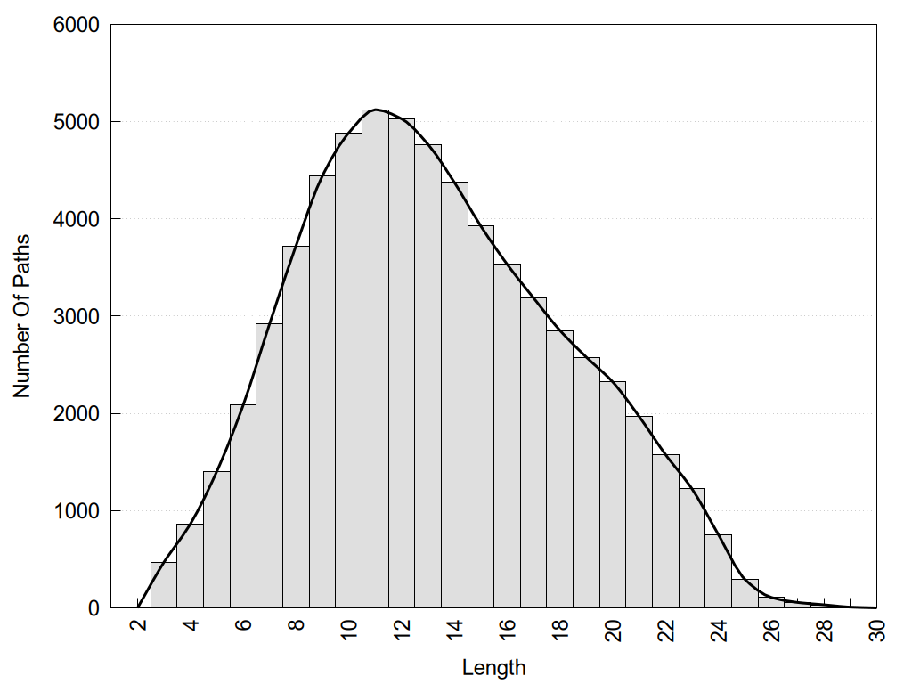histograms of path distribution according to several parameters