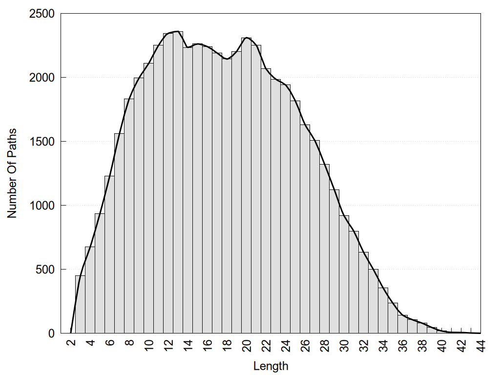 histograms of path distribution according to several parameters