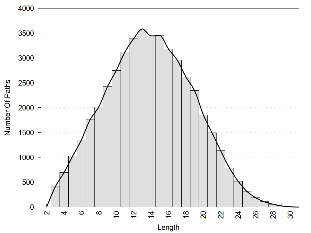 histograms of path distribution according to several parameters