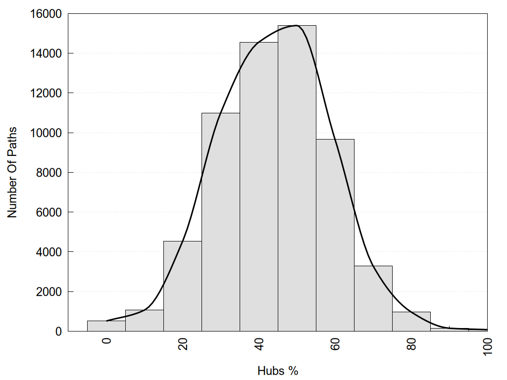 Hub1?, Hub2?: "Yes" if the corresponding node has more than 3 links, otherwise "No".