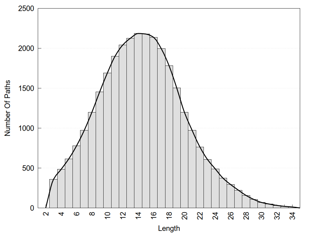 histograms of path distribution according to several parameters