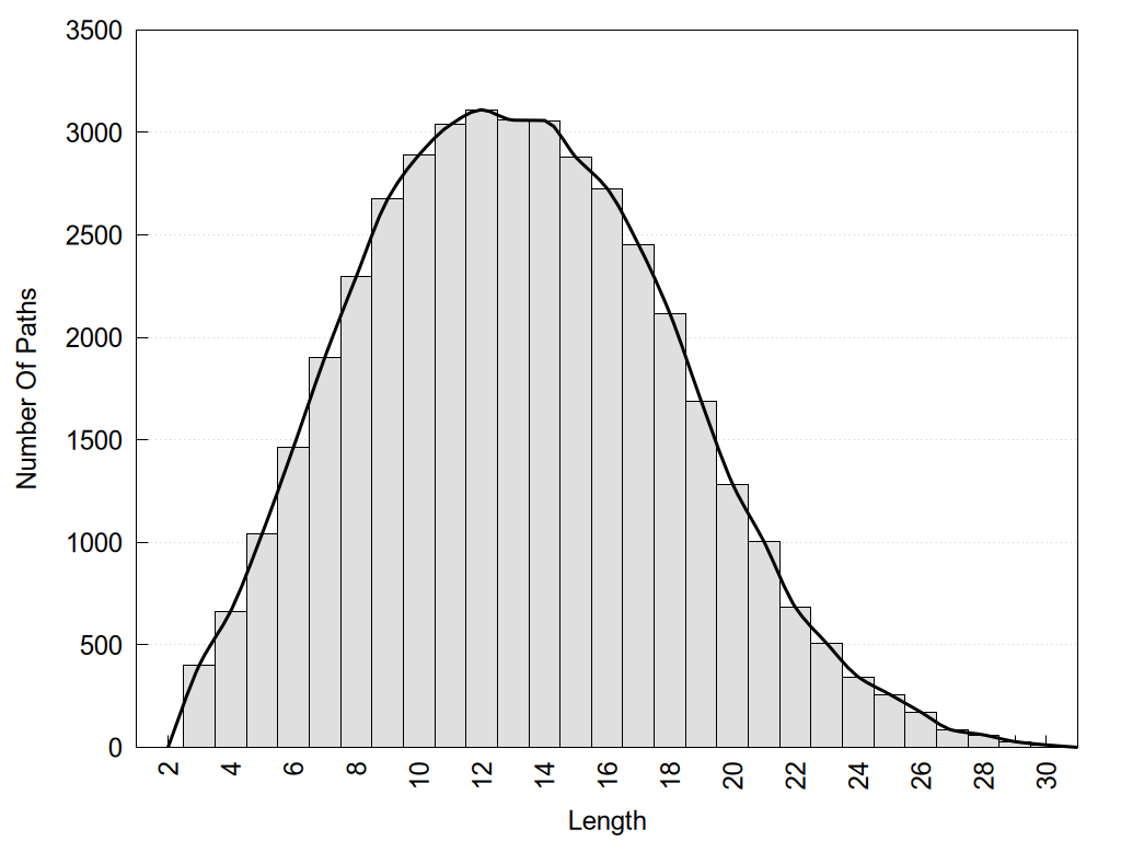 histograms of path distribution according to several parameters