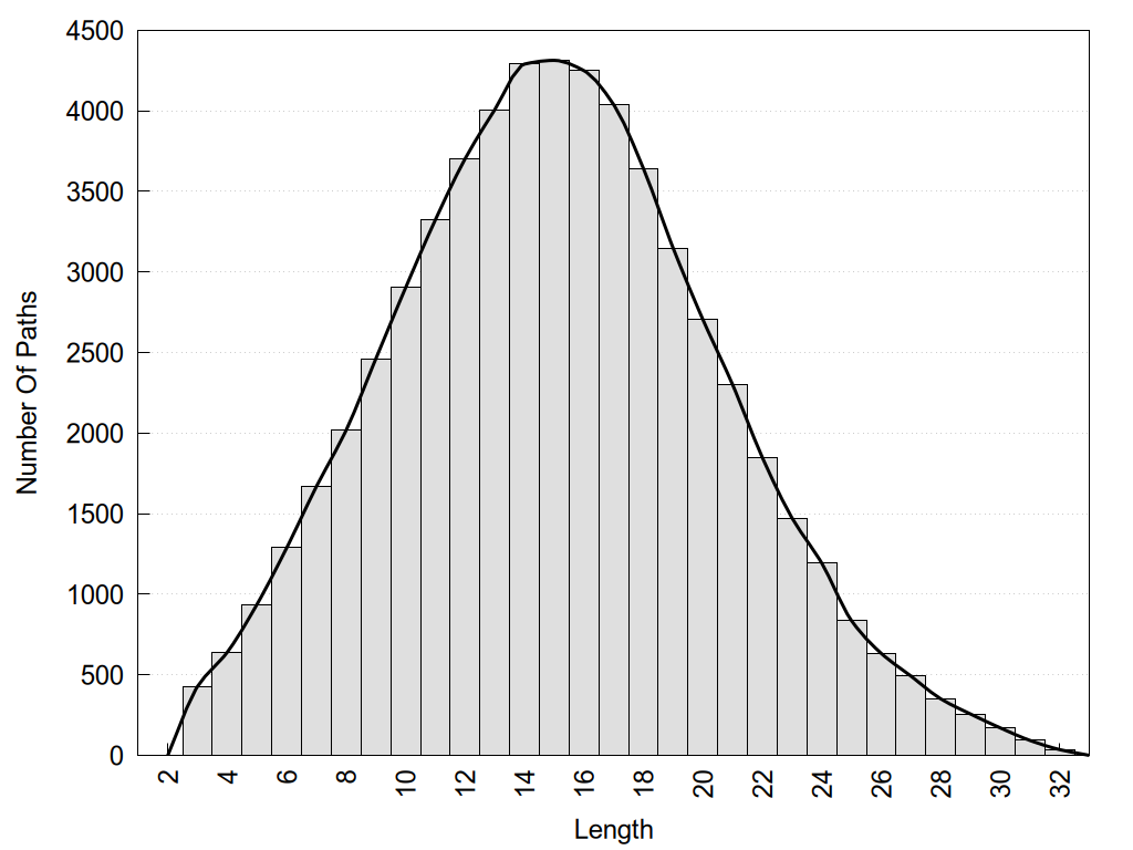 histograms of path distribution according to several parameters