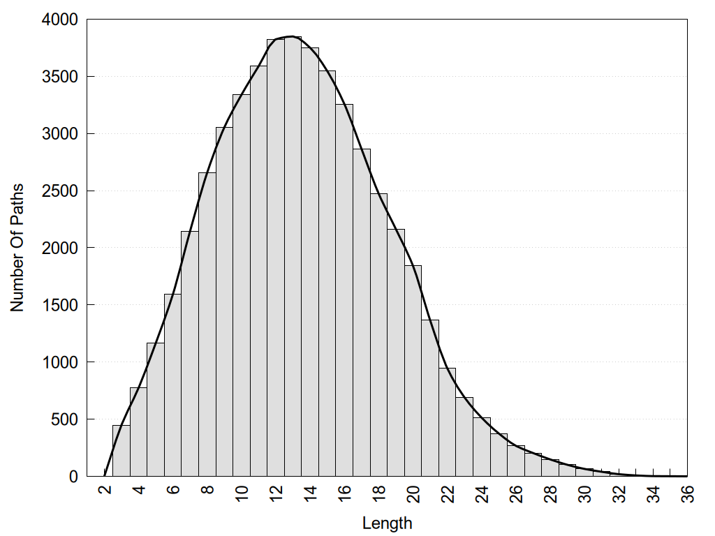 histograms of path distribution according to several parameters