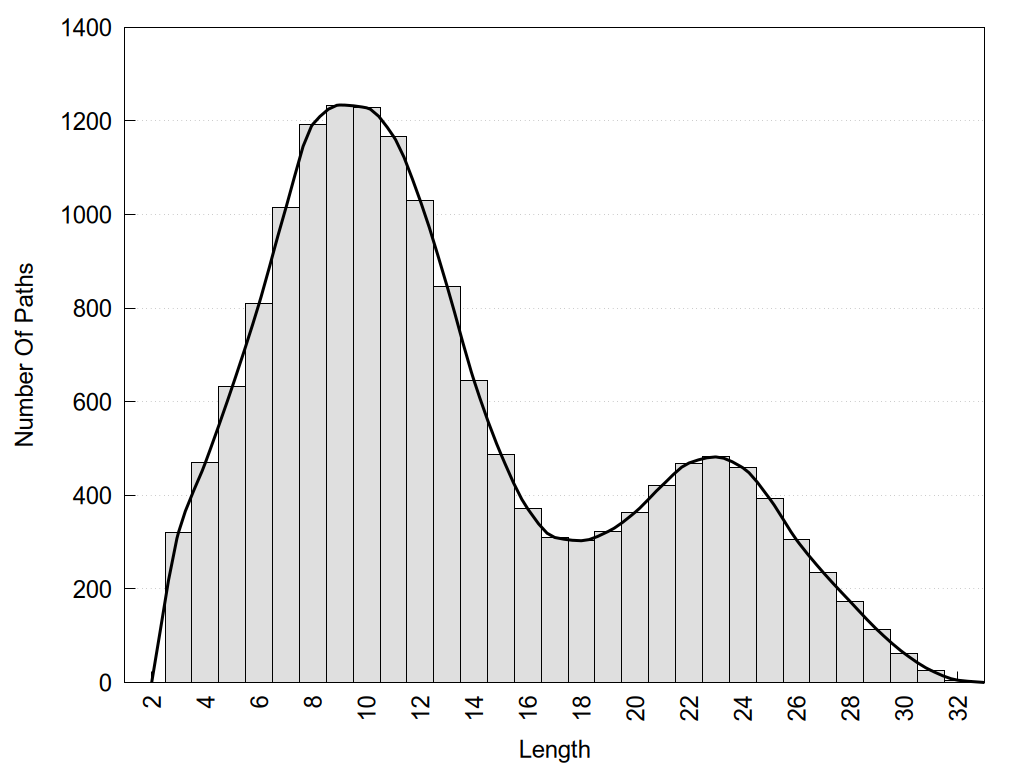 histograms of path distribution according to several parameters