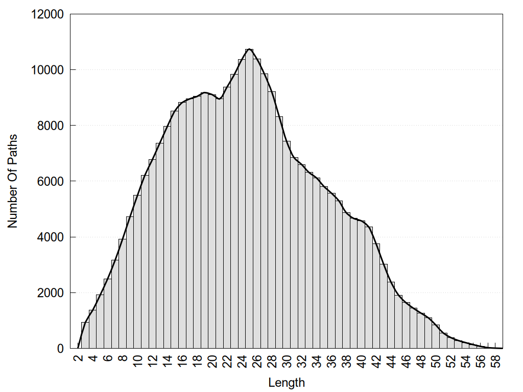 histograms of path distribution according to several parameters