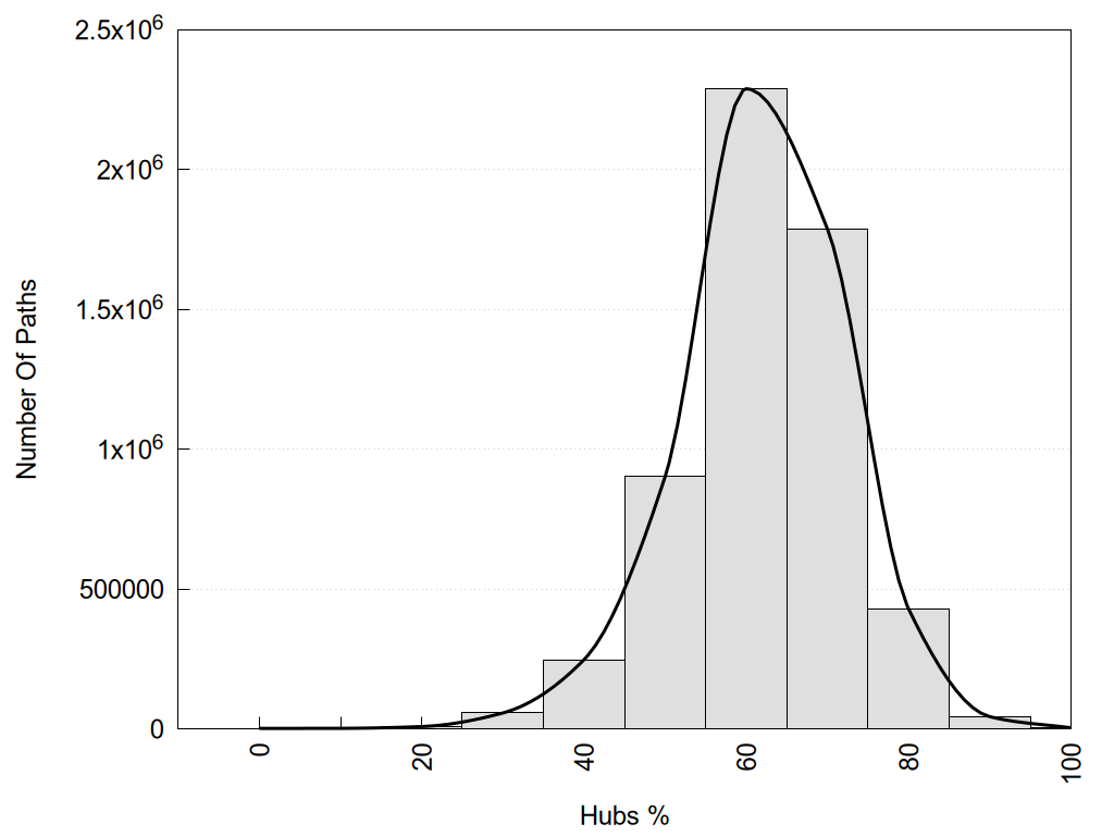 Hub1?, Hub2?: "Yes" if the corresponding node has more than 3 links, otherwise "No".
