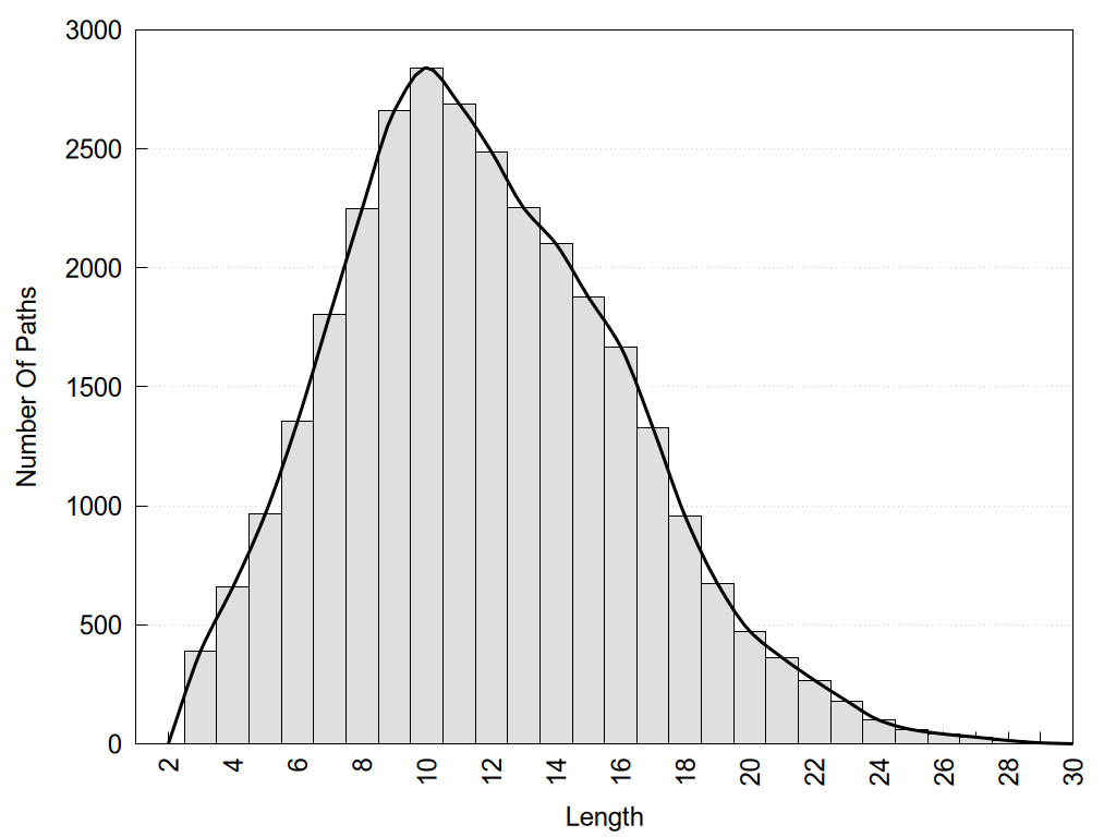 histograms of path distribution according to several parameters