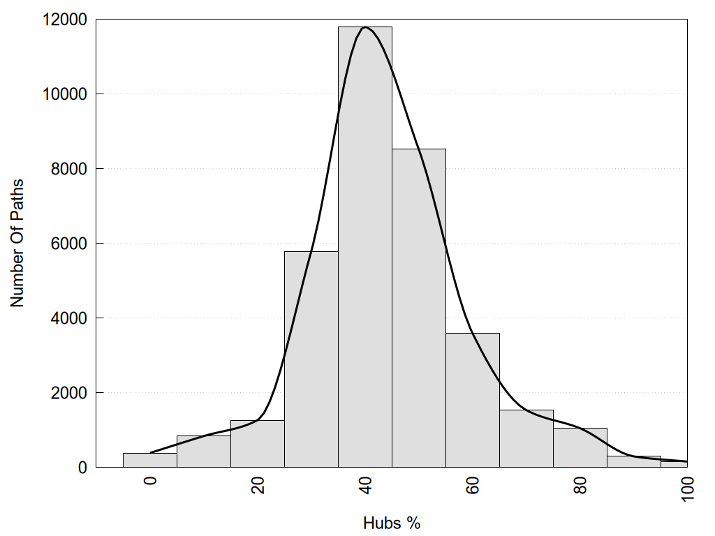 Hub1?, Hub2?: "Yes" if the corresponding node has more than 3 links, otherwise "No".