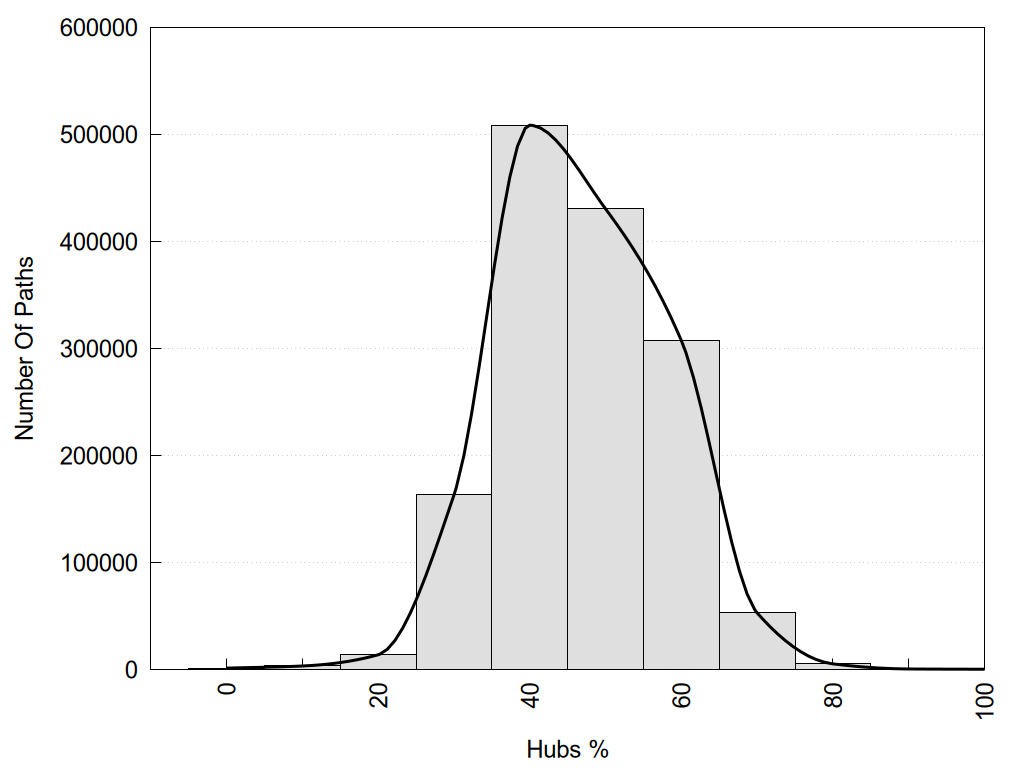 Hub1?, Hub2?: "Yes" if the corresponding node has more than 3 links, otherwise "No".
