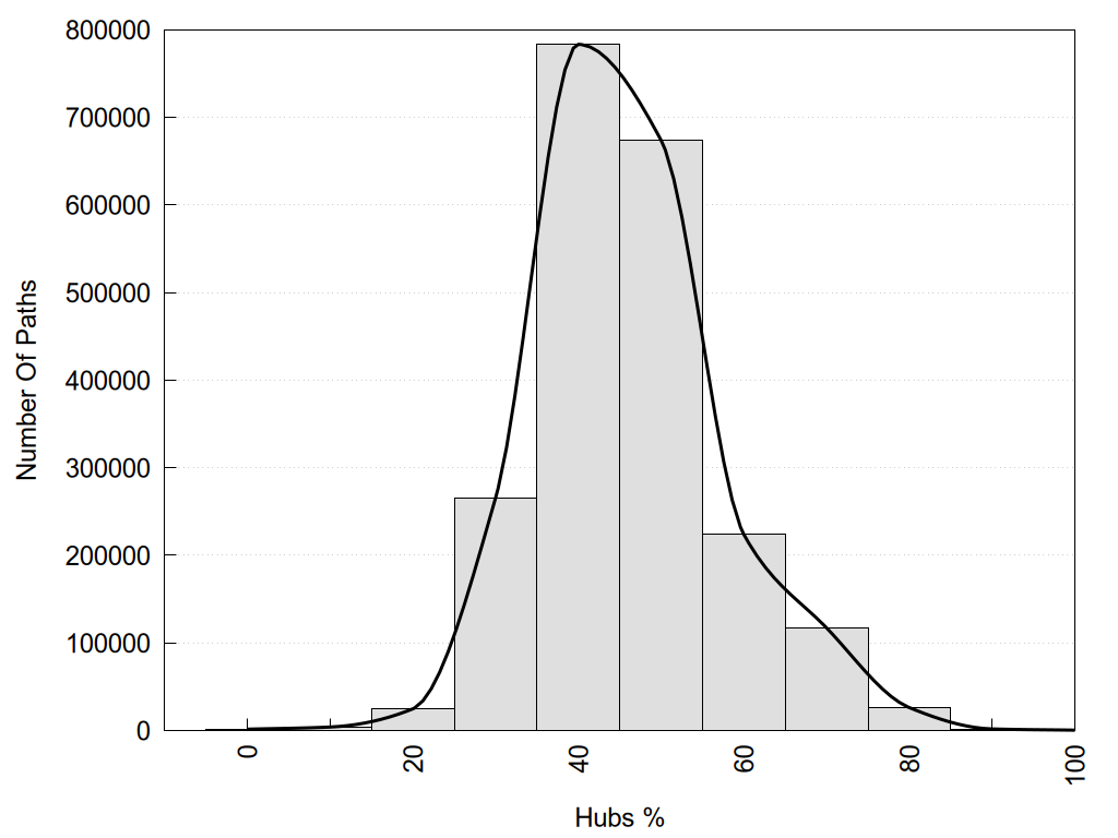 Hub1?, Hub2?: "Yes" if the corresponding node has more than 3 links, otherwise "No".