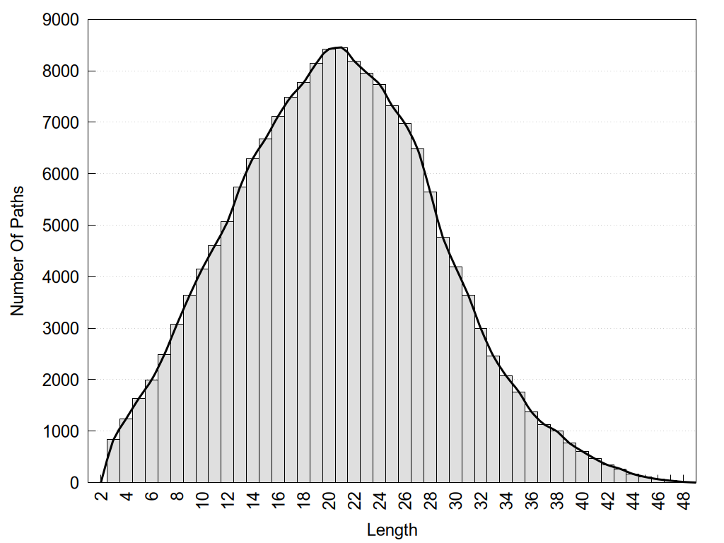 histograms of path distribution according to several parameters