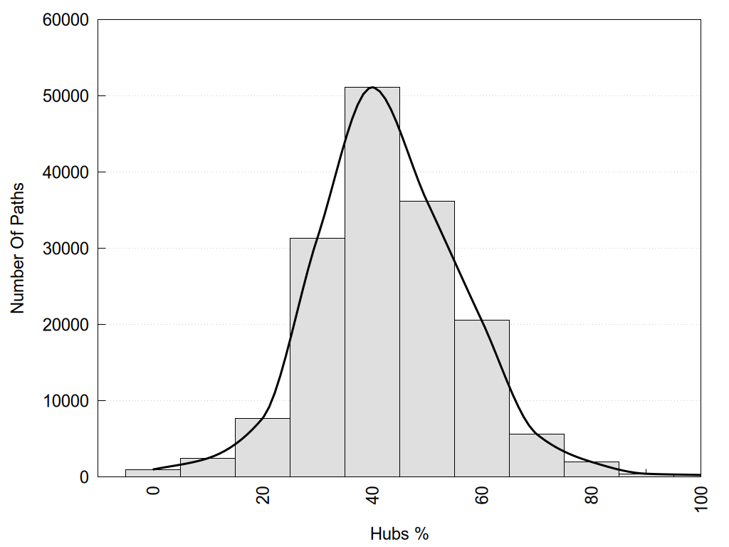 Hub1?, Hub2?: "Yes" if the corresponding node has more than 3 links, otherwise "No".