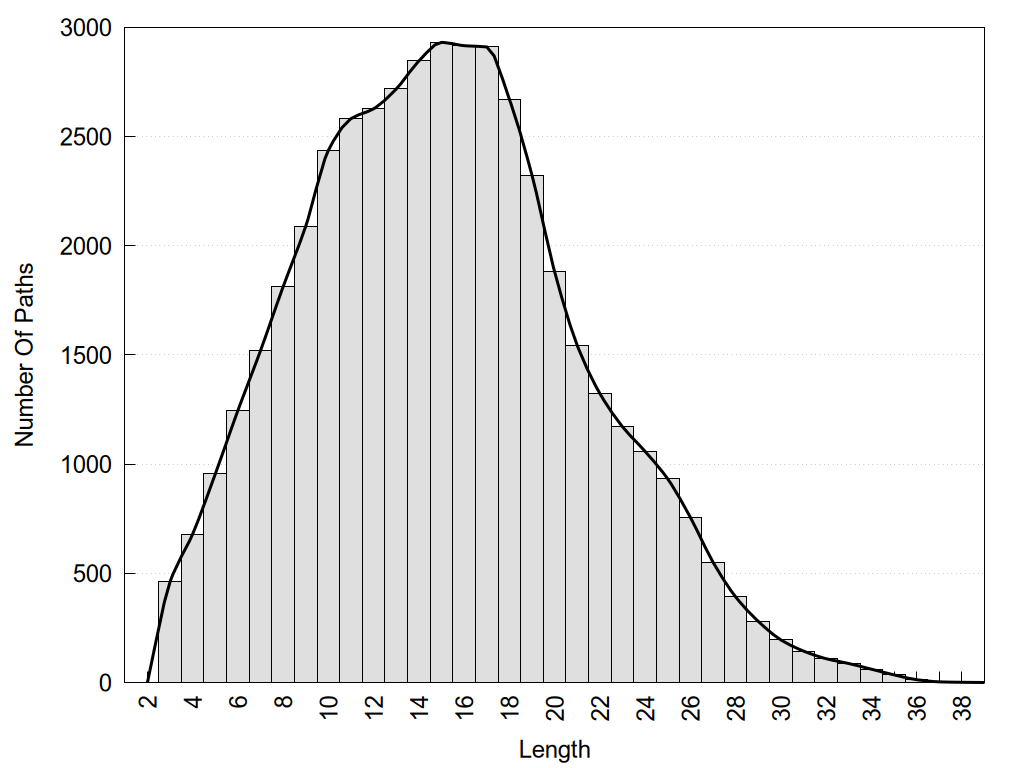 histograms of path distribution according to several parameters