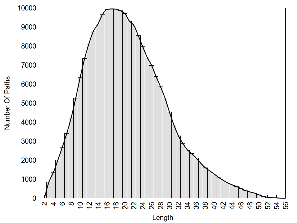 histograms of path distribution according to several parameters