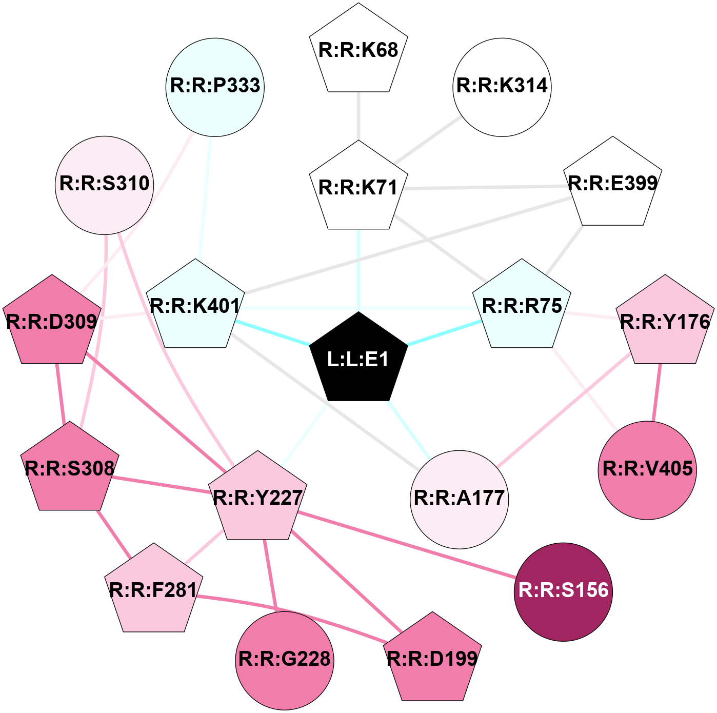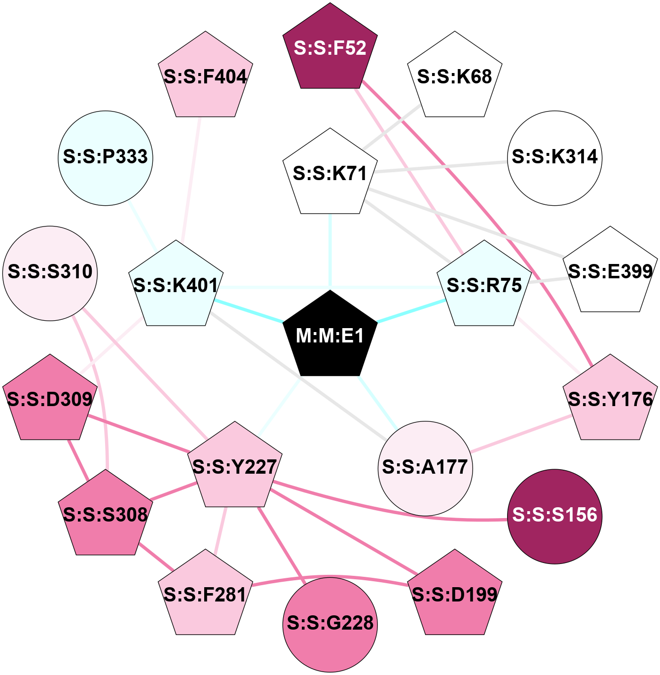 Links and nodes colored according to ConSurf Conservation Grade (See documentation): n/a 1 2 3 4 5 6 7 8 9 |