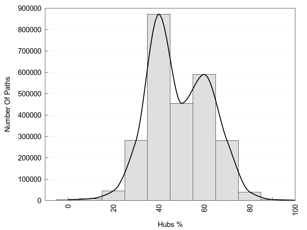Hub1?, Hub2?: "Yes" if the corresponding node has more than 3 links, otherwise "No".
