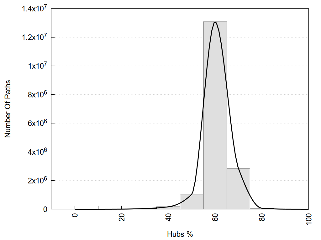 Hub1?, Hub2?: "Yes" if the corresponding node has more than 3 links, otherwise "No".