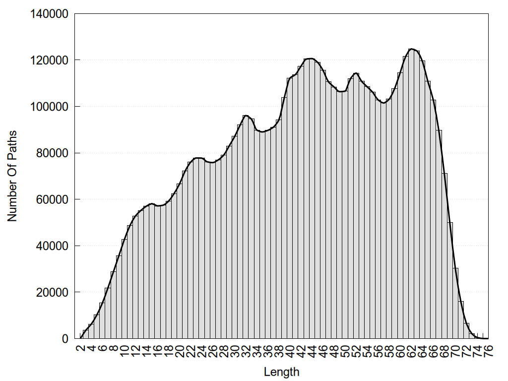 histograms of path distribution according to several parameters
