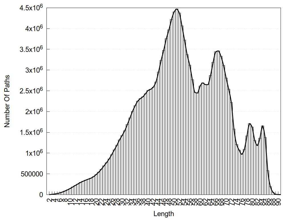 histograms of path distribution according to several parameters