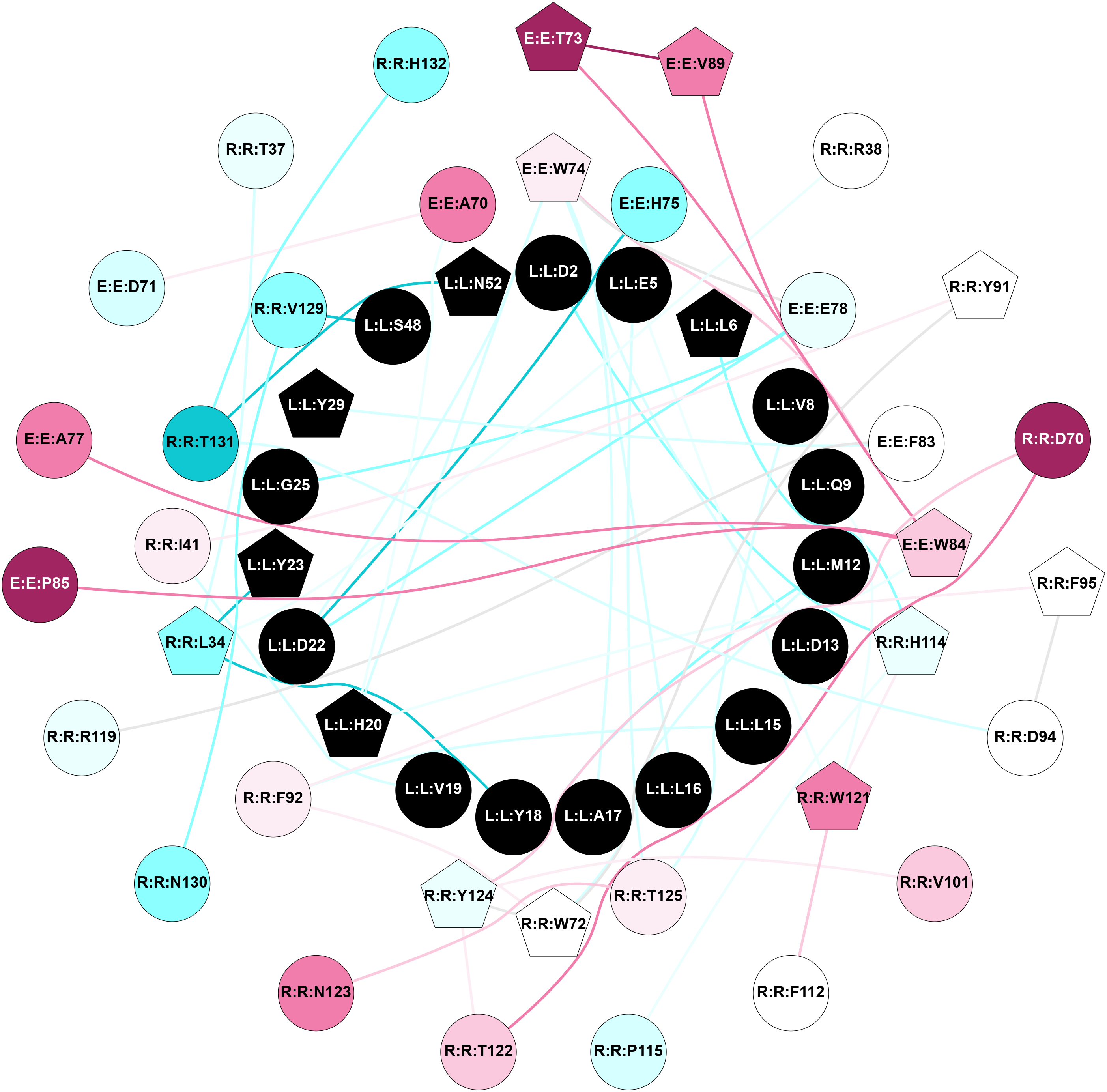 Links and nodes colored according to ConSurf Conservation Grade (See documentation): n/a 1 2 3 4 5 6 7 8 9 |