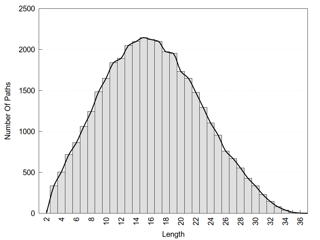 histograms of path distribution according to several parameters