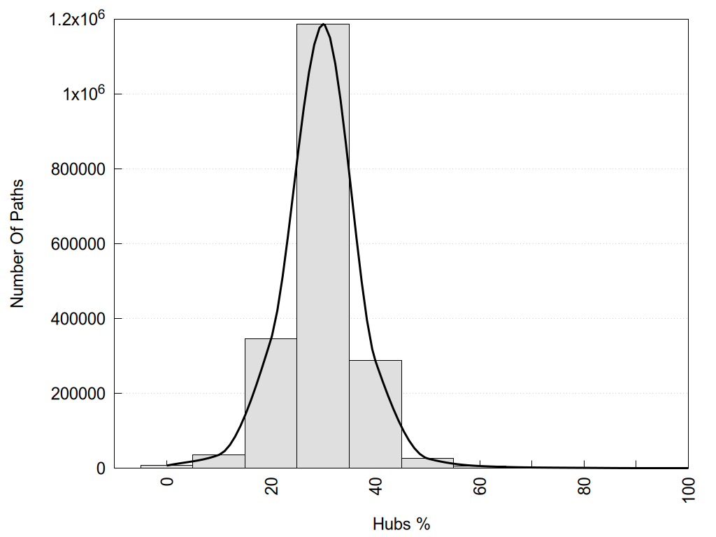 Hub1?, Hub2?: "Yes" if the corresponding node has more than 3 links, otherwise "No".