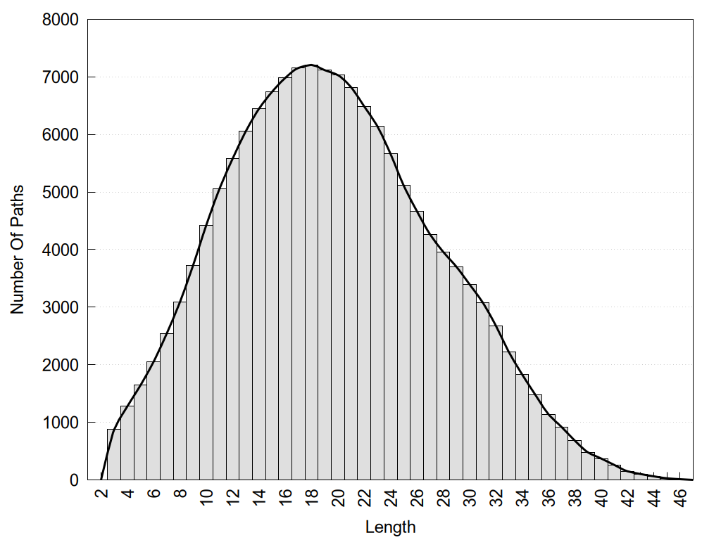 histograms of path distribution according to several parameters