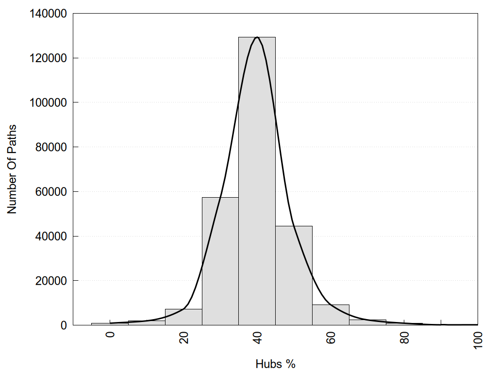 Hub1?, Hub2?: "Yes" if the corresponding node has more than 3 links, otherwise "No".