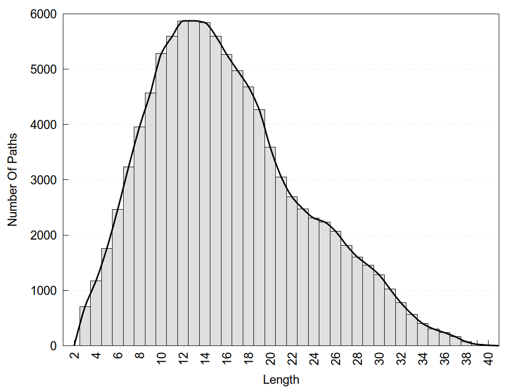 histograms of path distribution according to several parameters
