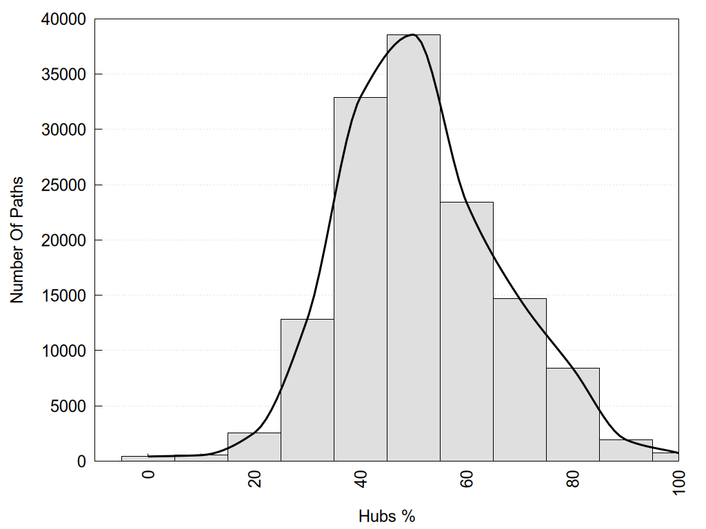 Hub1?, Hub2?: "Yes" if the corresponding node has more than 3 links, otherwise "No".