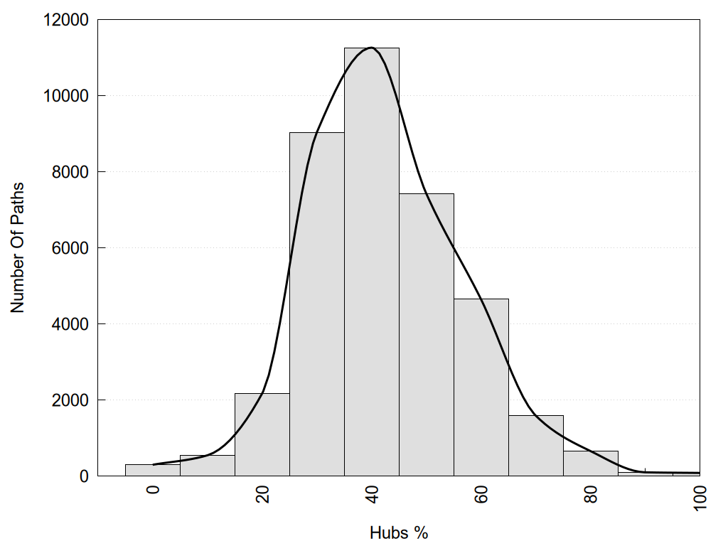 Hub1?, Hub2?: "Yes" if the corresponding node has more than 3 links, otherwise "No".
